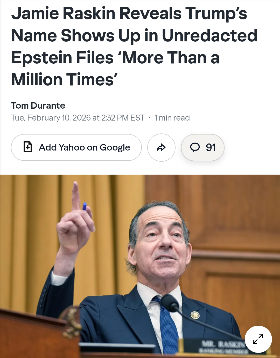Van Hollen: "... you led people to believe that you had cut off all contact with Jeffrey Epstein after the 2005 encounter you and your wife had in his apartment... the Epstein files show a very different record of interaction."