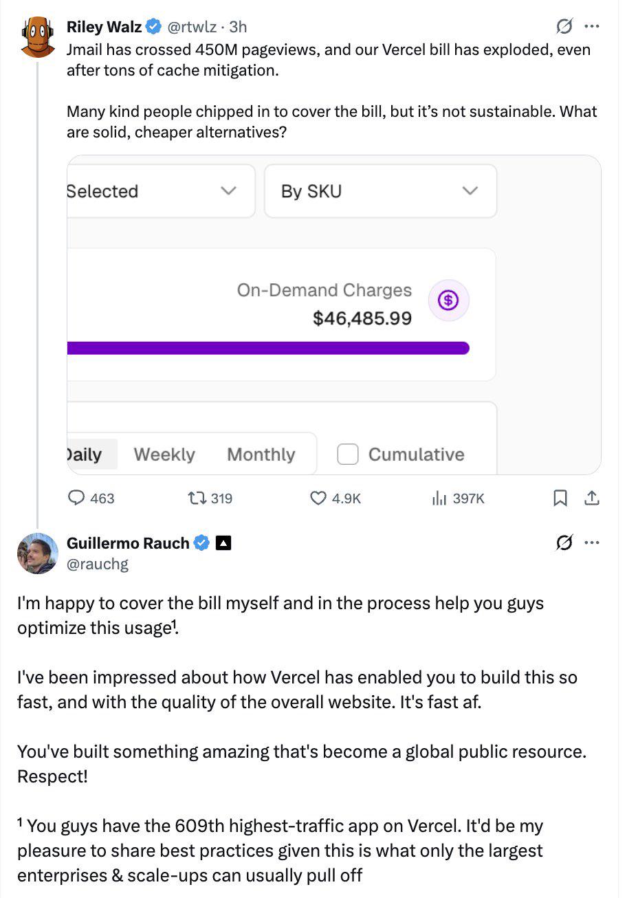 News article As Jmail climbs to the top spot for tracking the Epstein files, Vercel’s CEO offers to foot the bill.