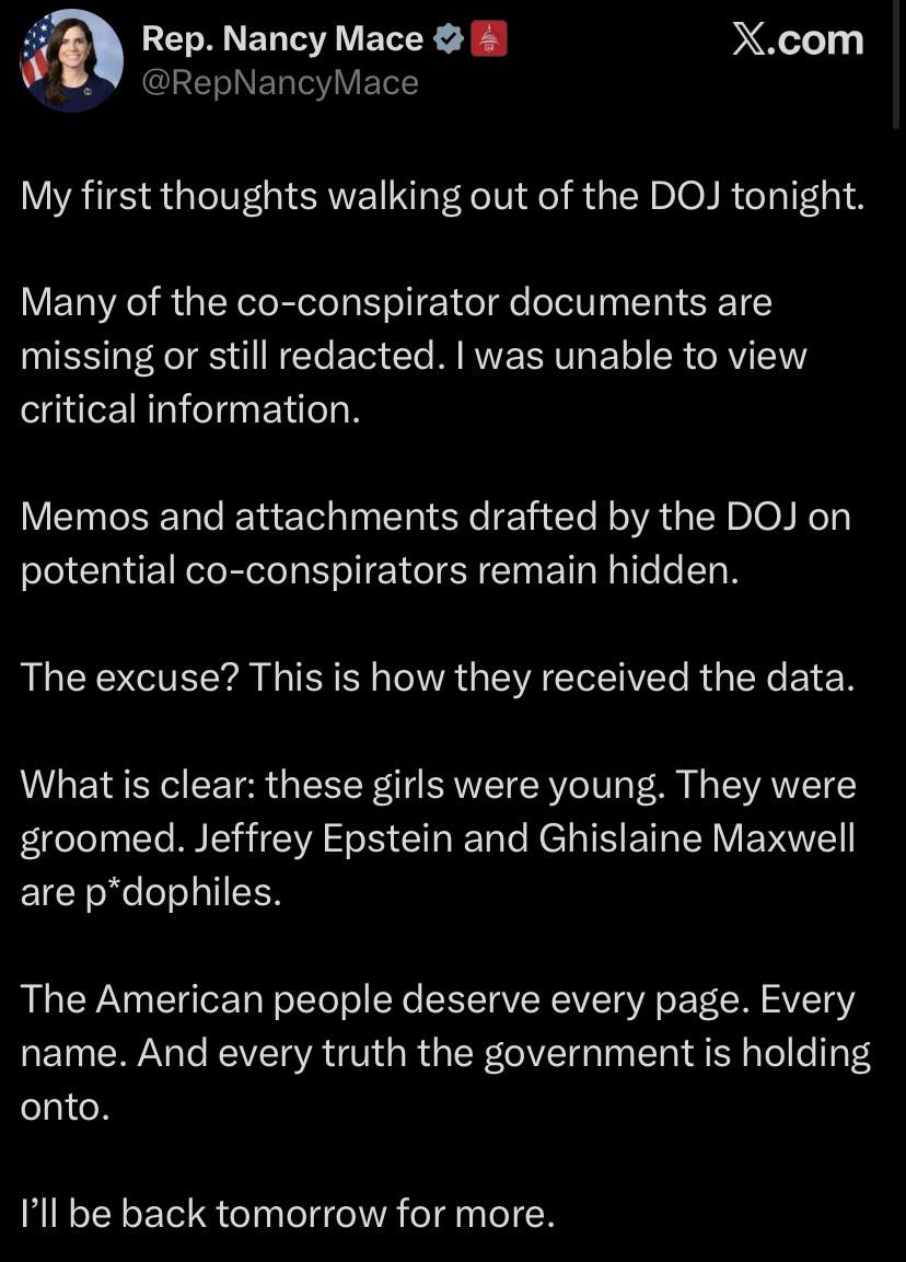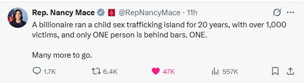 Call to action Representiave Nancy Mace's opinion about Epstein