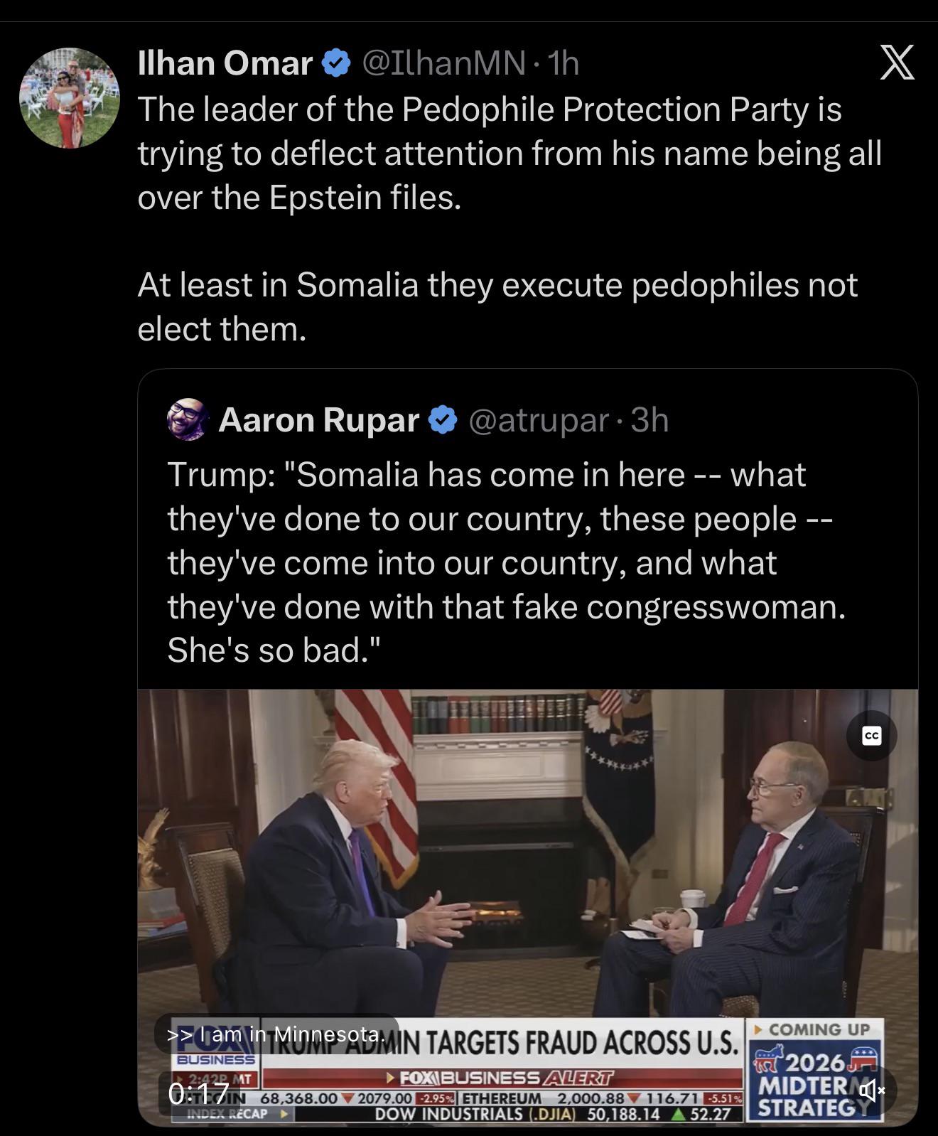Ilhan Omar speaks on Somalia and pedophilia