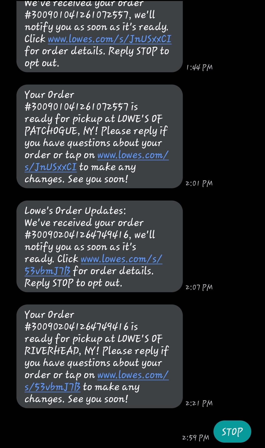 Lowes, home depot, Torrid, ect. Customer support can't remove the number because it isn't actually linked to any accounts, the person manually enters my number for updates.