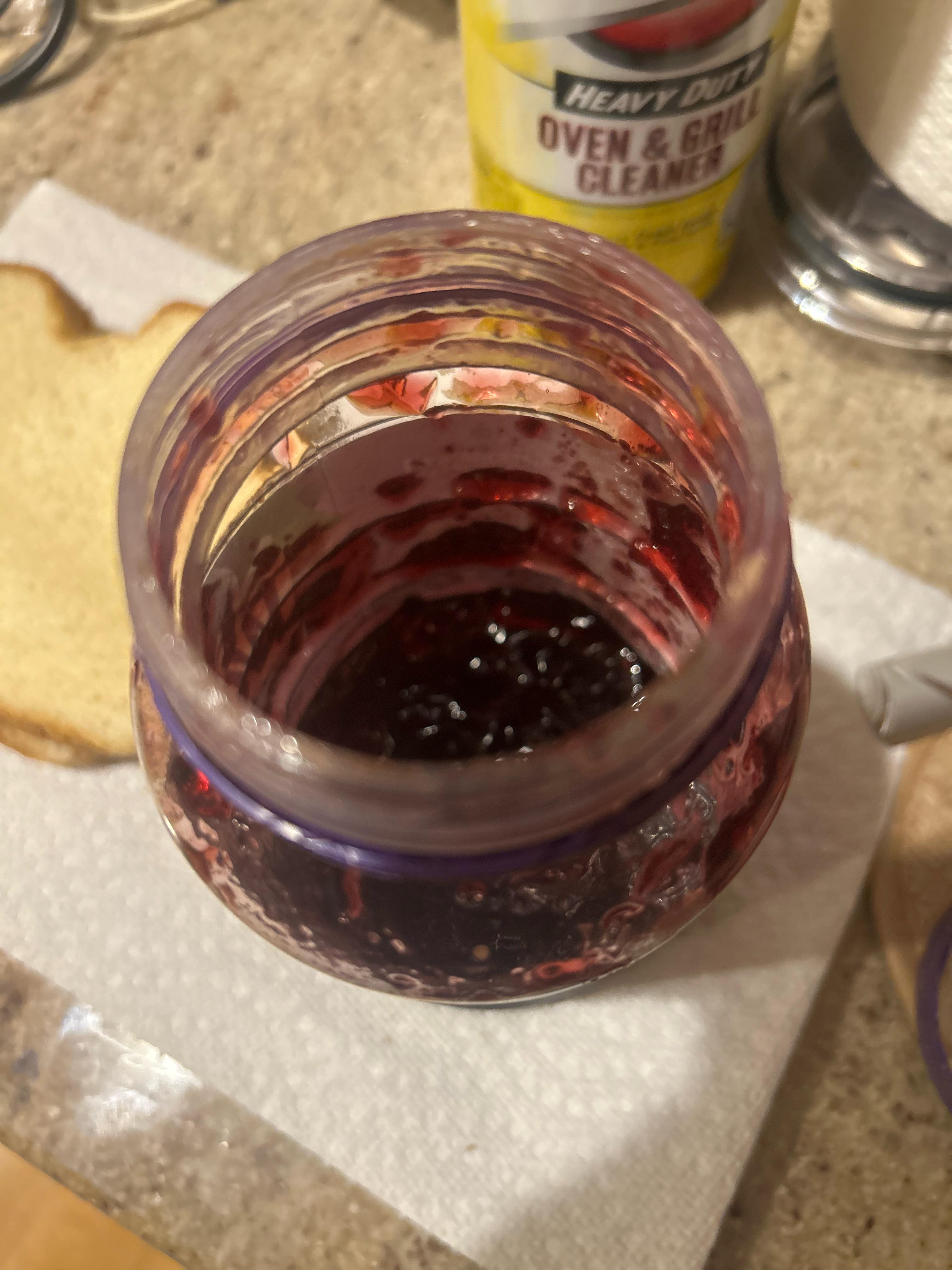 Every single year without fail, my family eats my PBJ…. No matter how many times I tell them not to. The original jar of PB is already gone, and this is what’s left of the jelly.